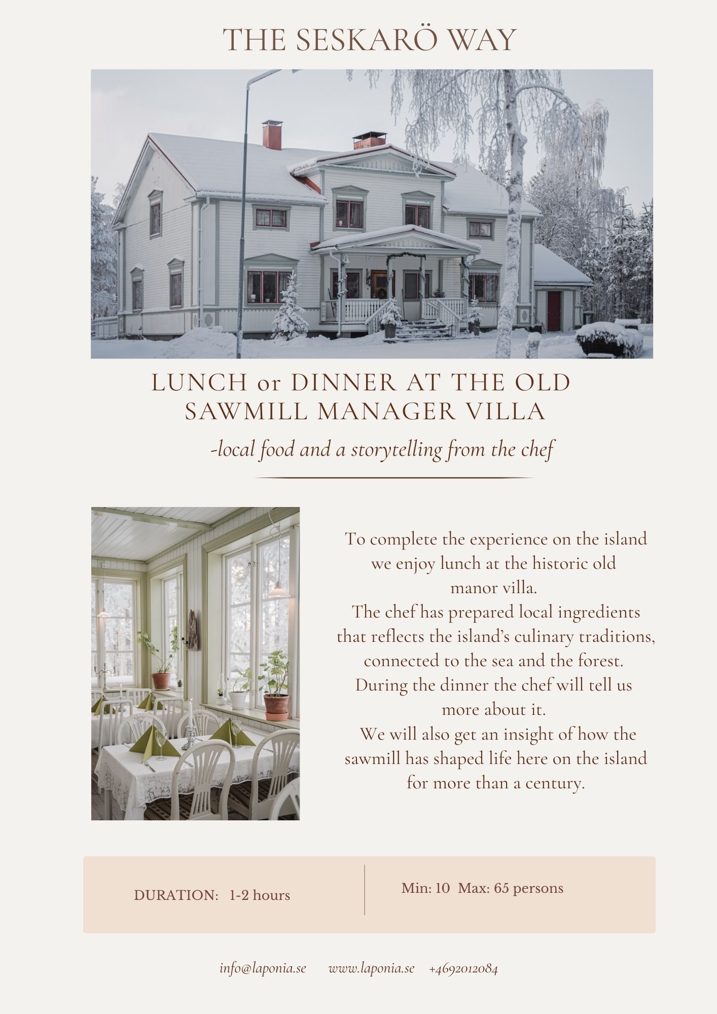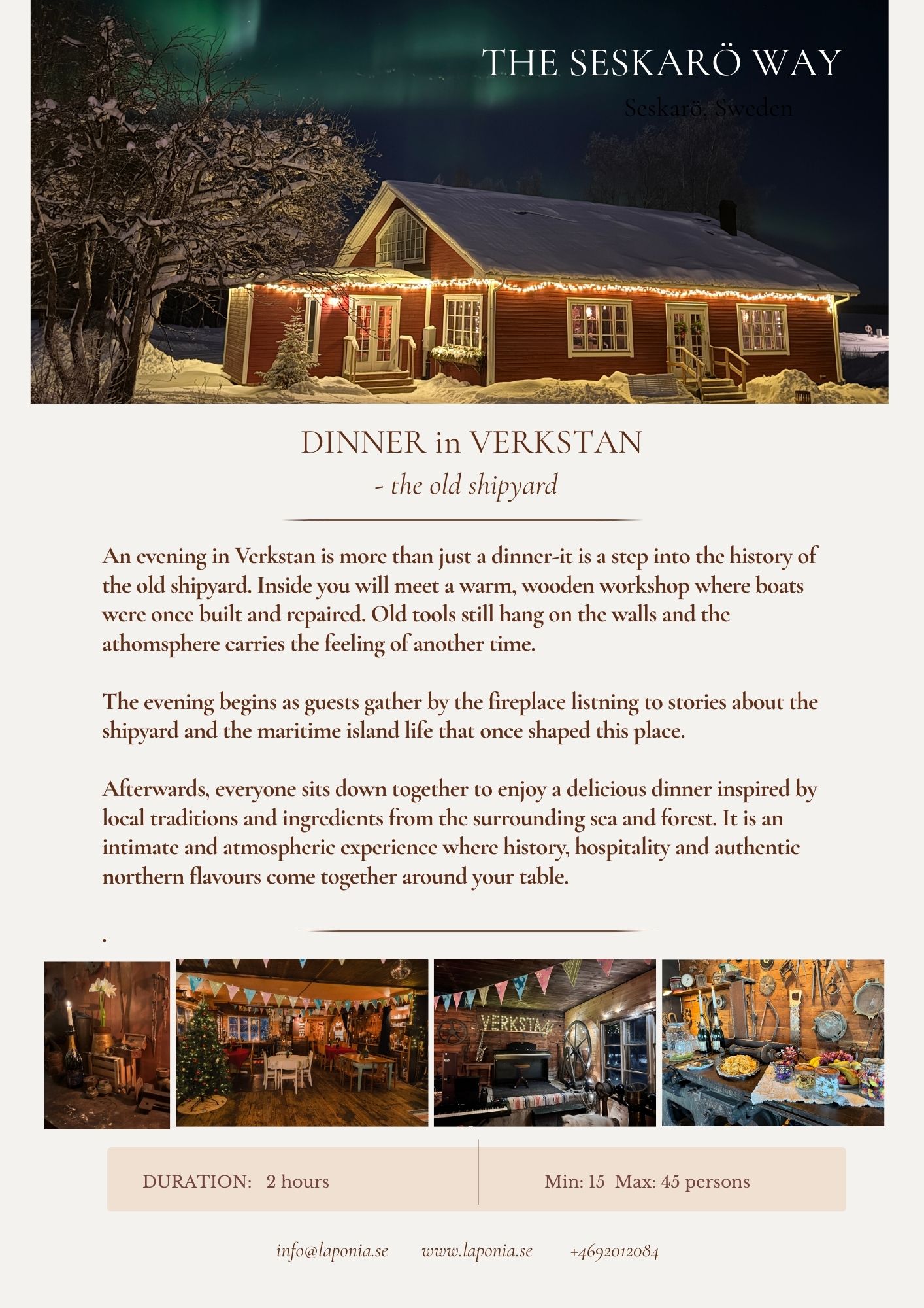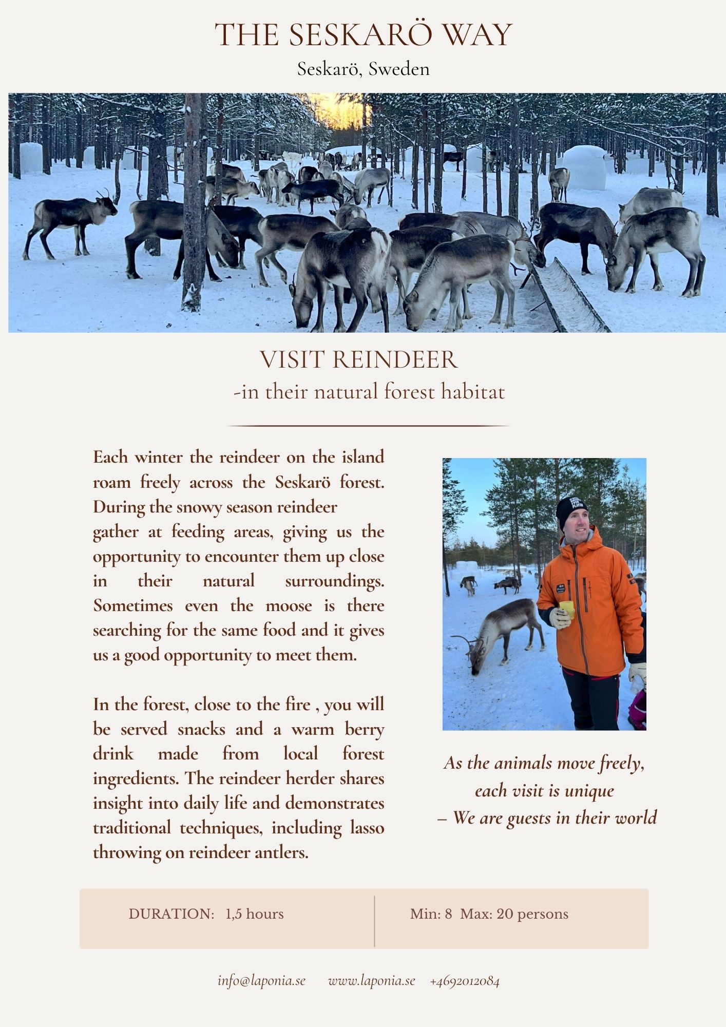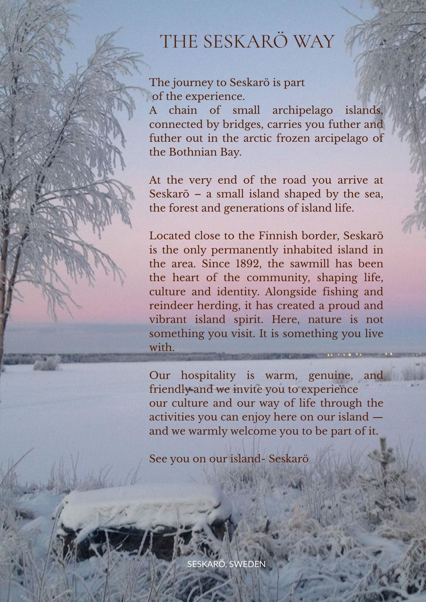 Laponia Winter Experience Hope you enjoy our activities in “The Seskarö way” that you find here below! Contact us for more information about schedules and prices. Info@laponia.se +4692012084